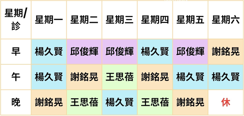 115/3/2(一)起,診所門診表異動如下: